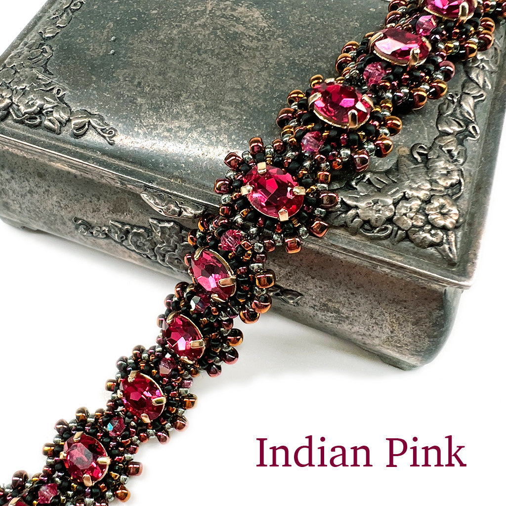 The Olivia Bracelet is a relaxingly easy to bead bracelet with tiny 8x6 framed oval stones and a scattering of 3mm crystals.